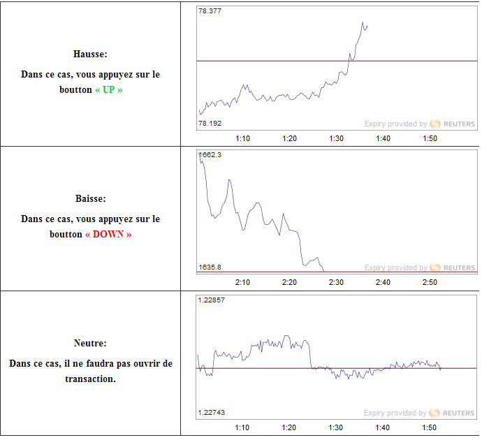 Il vous suffit de détecter une Hausse ou une Baisse importante sur un actif et ouvrir une transaction.